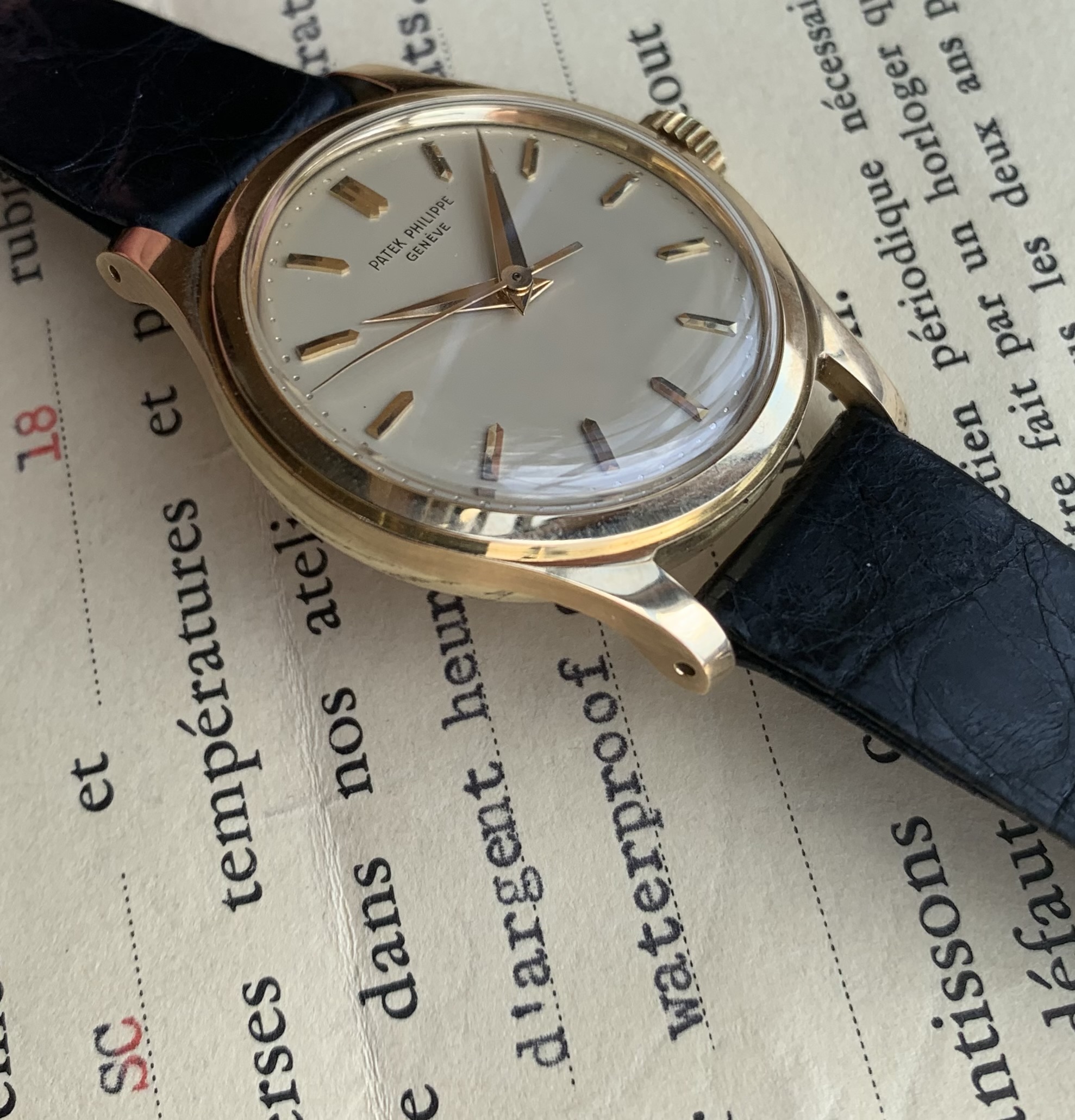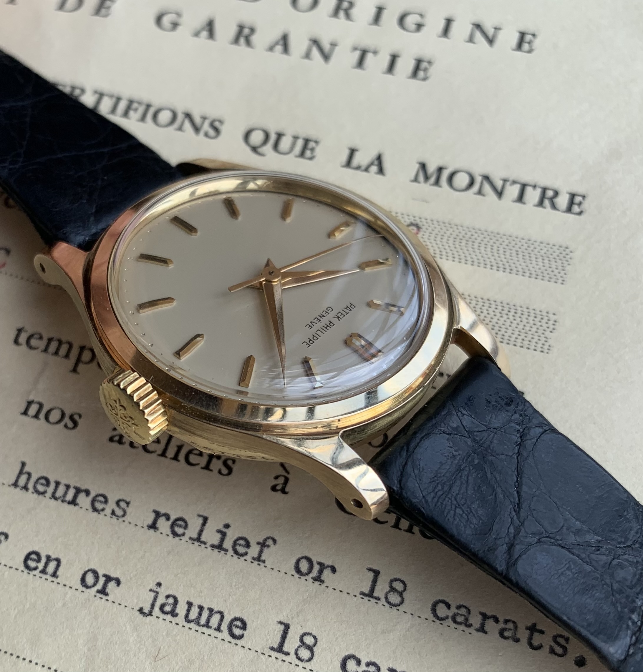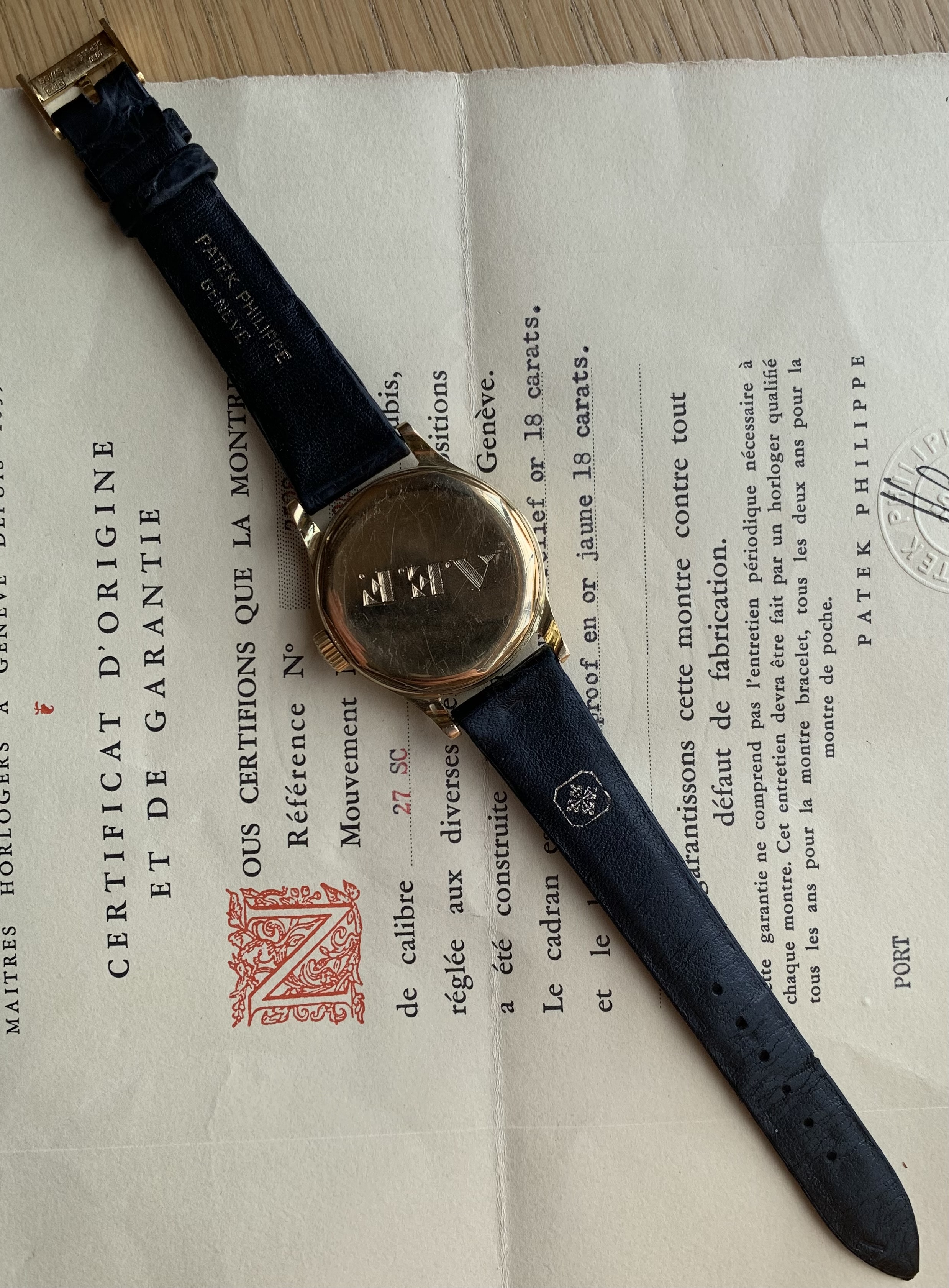 Original Patek strap and original 18K buckle.