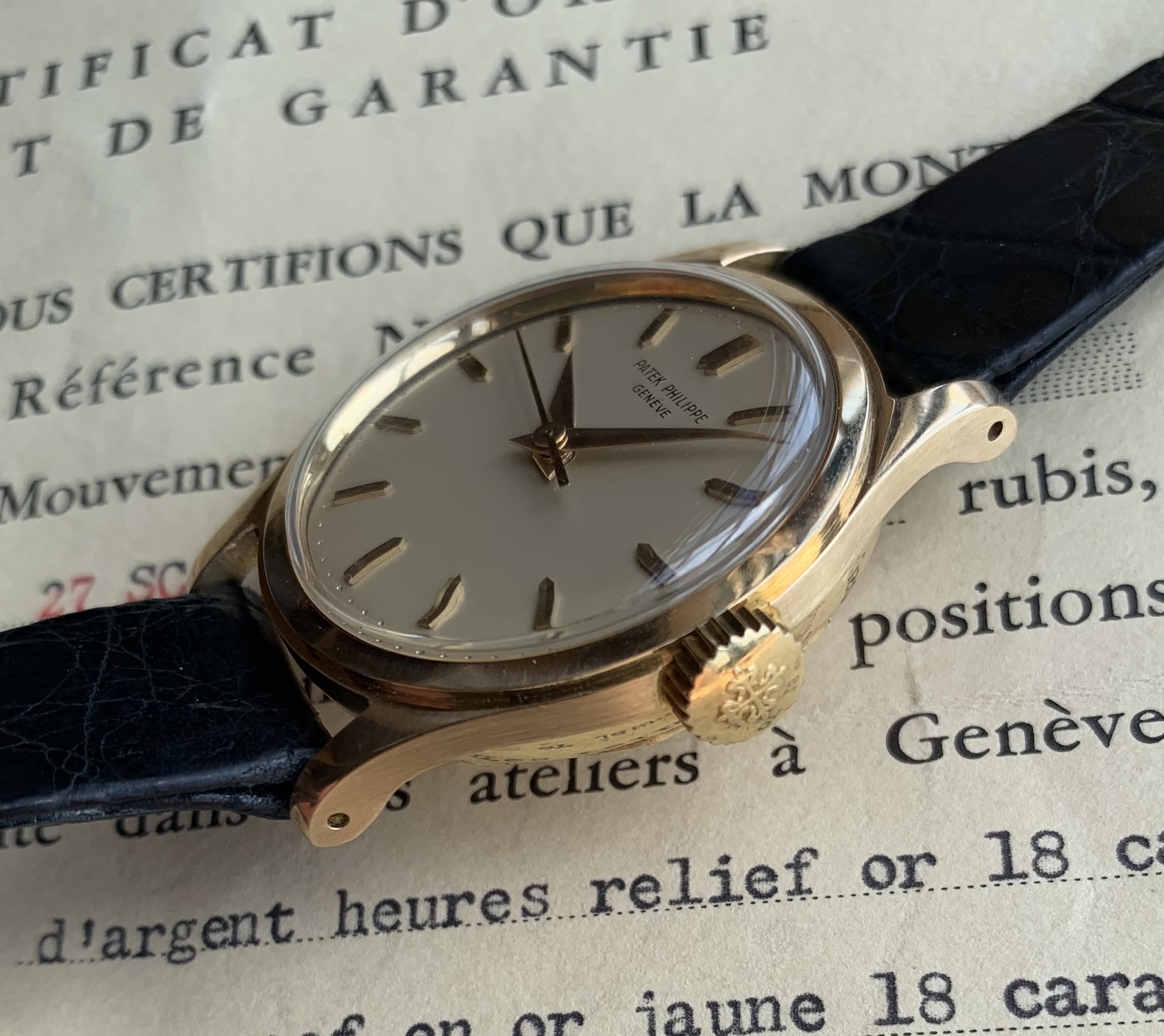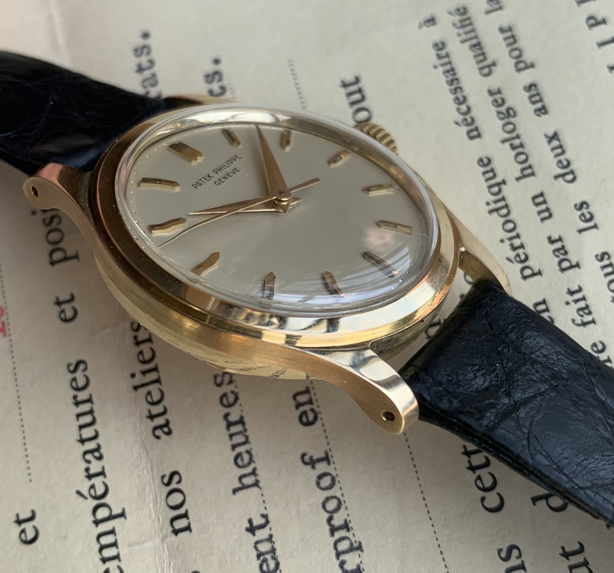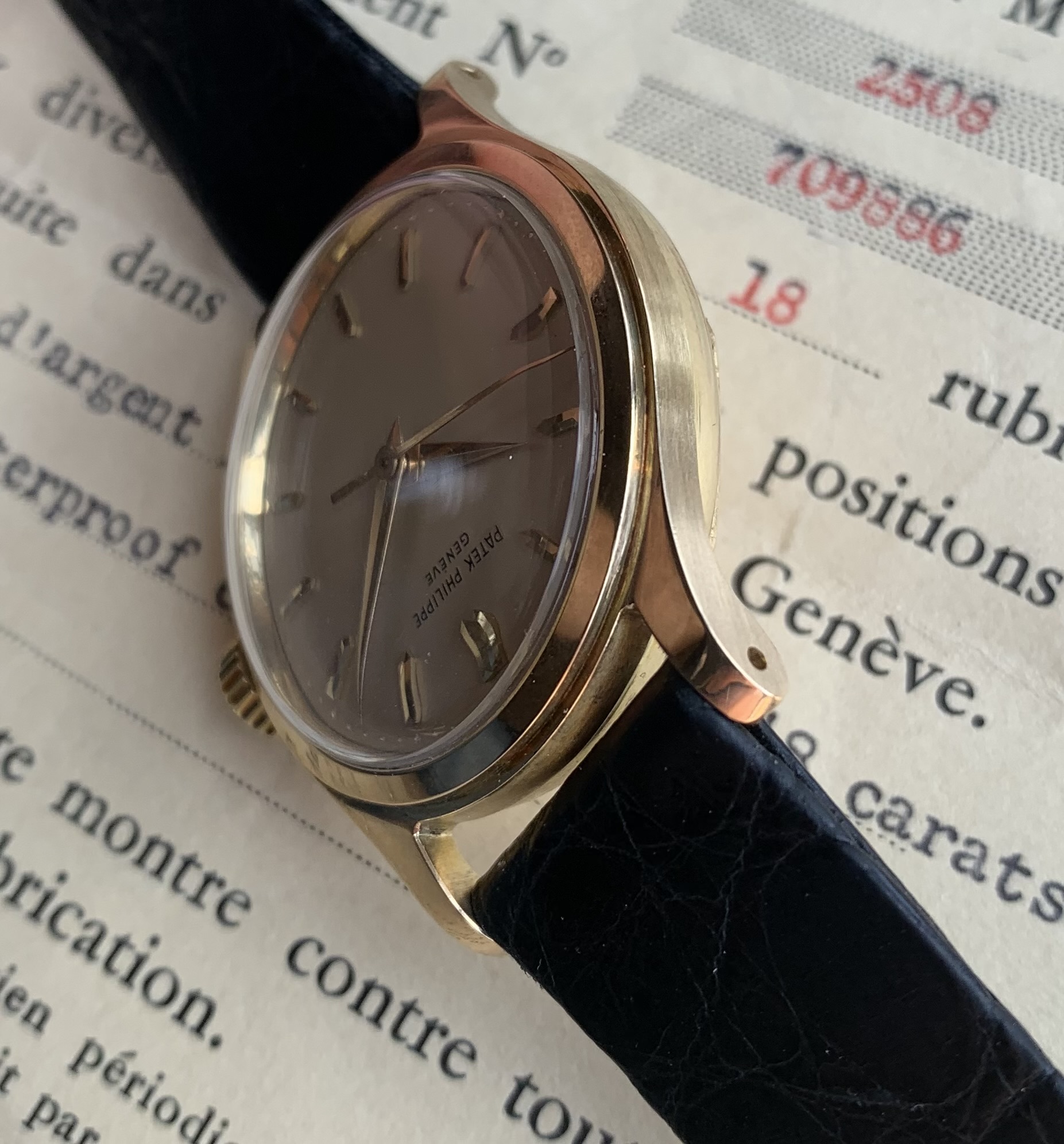 Original Patek strap and original 18K buckle.