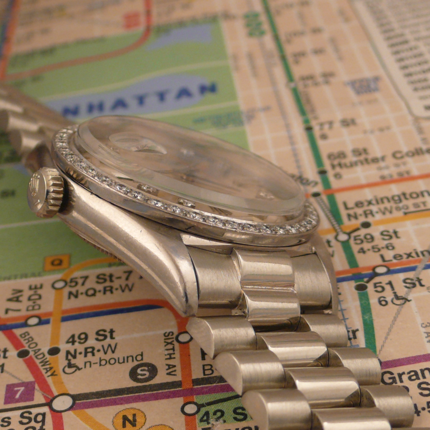 This is an all original untouched factory original rare reference 1804. Wearing this beauty, will absolutely make a bold statement. However, the diamonds and bling of the 1960's are fortunately much more subtle than what we see today.