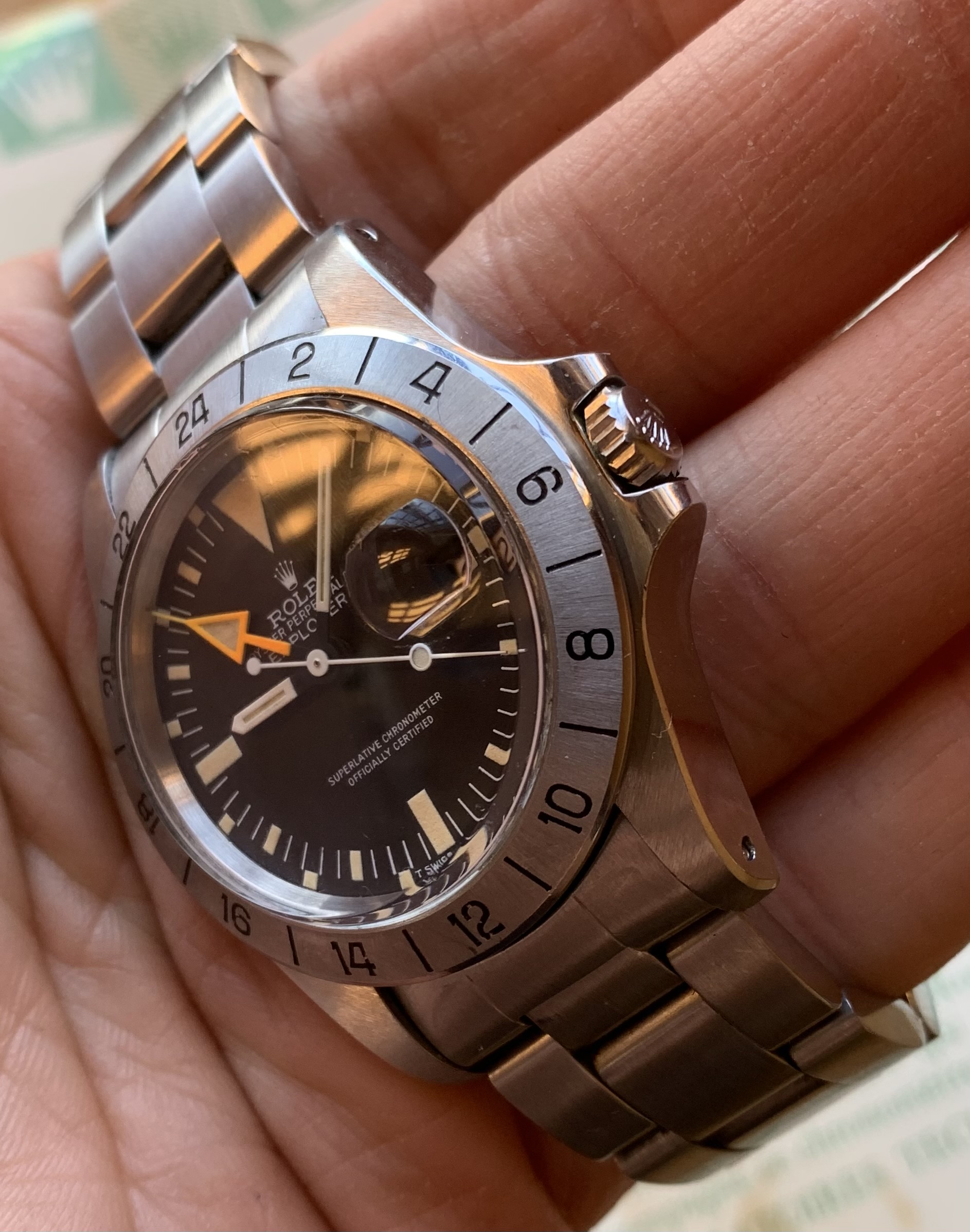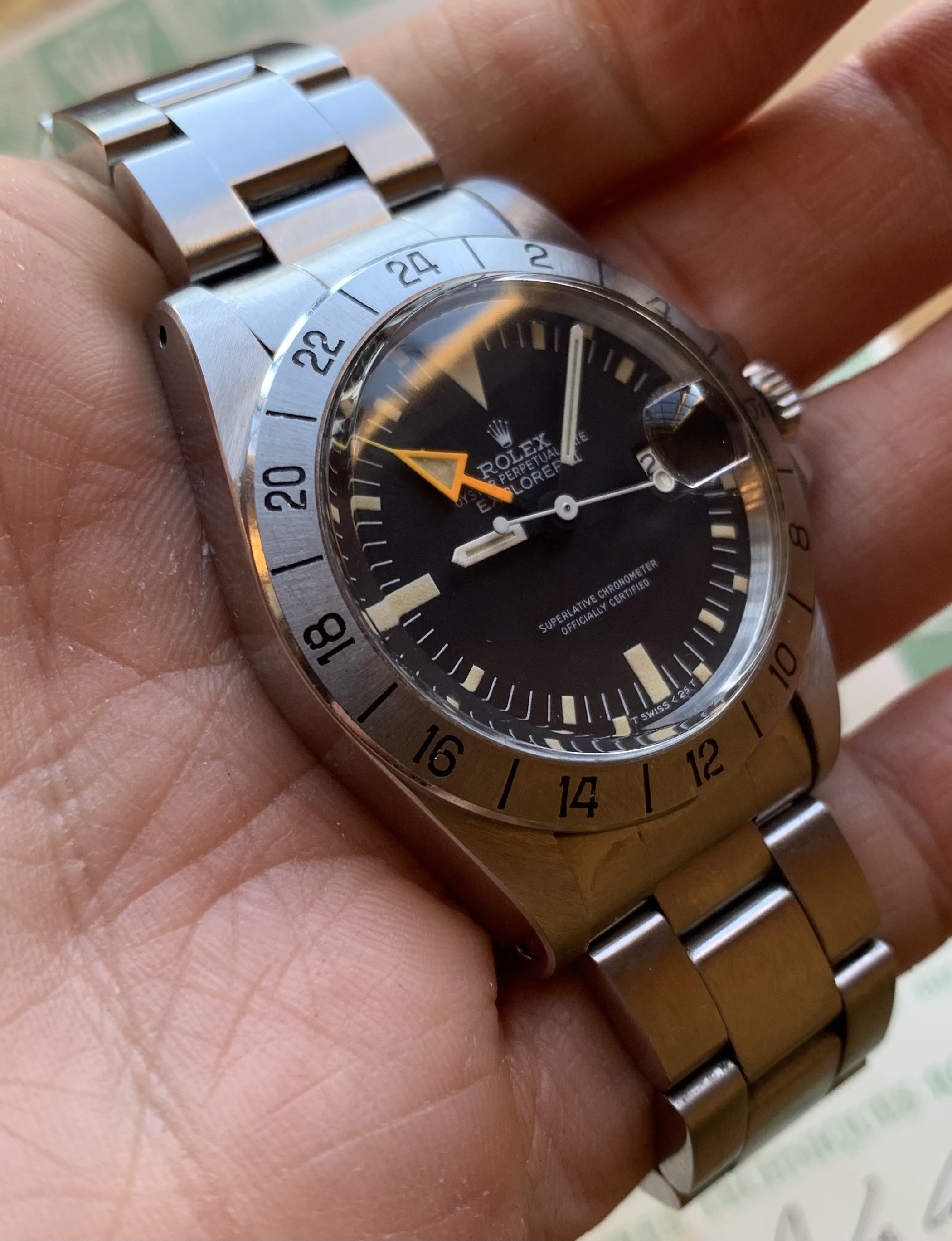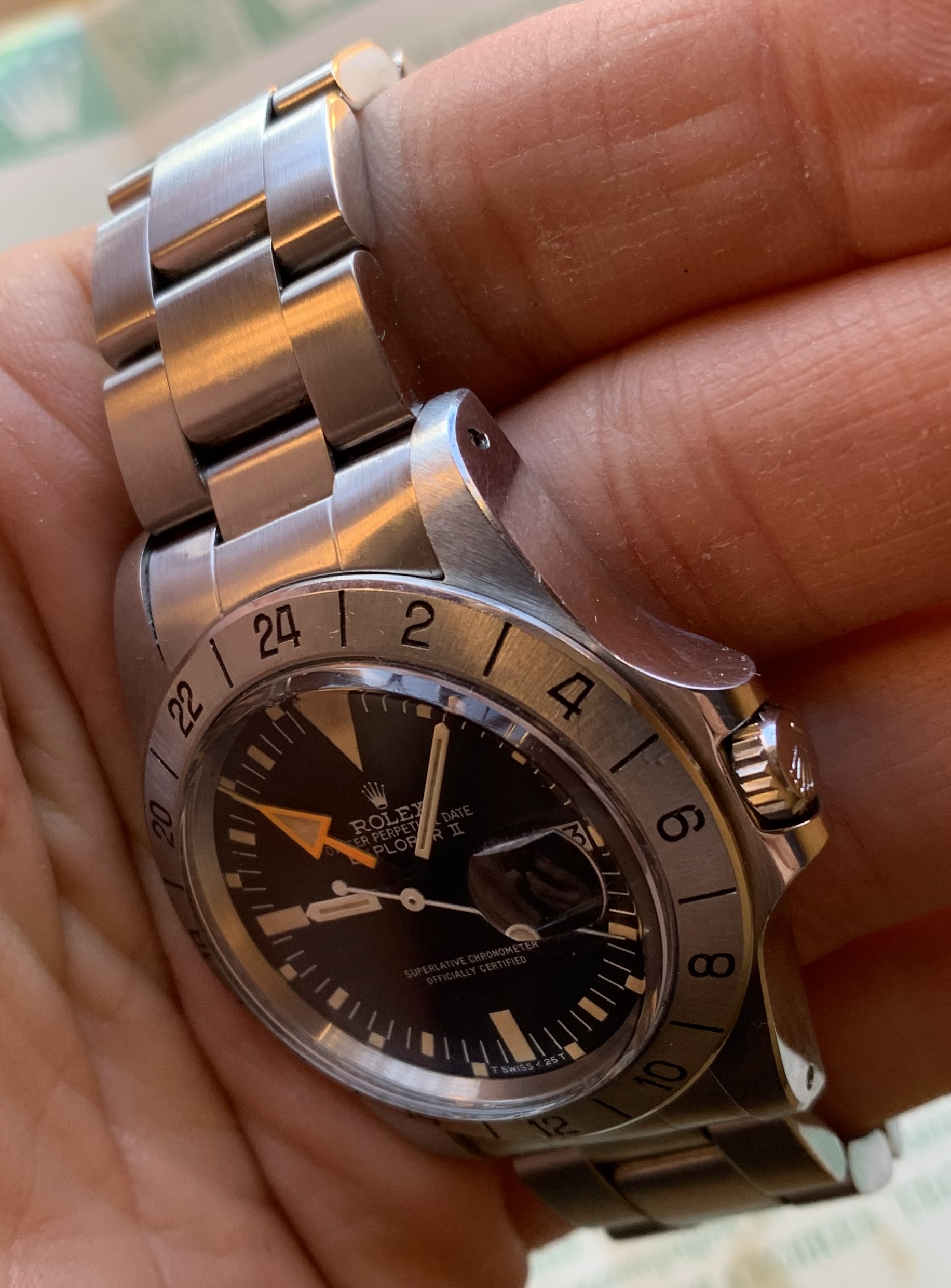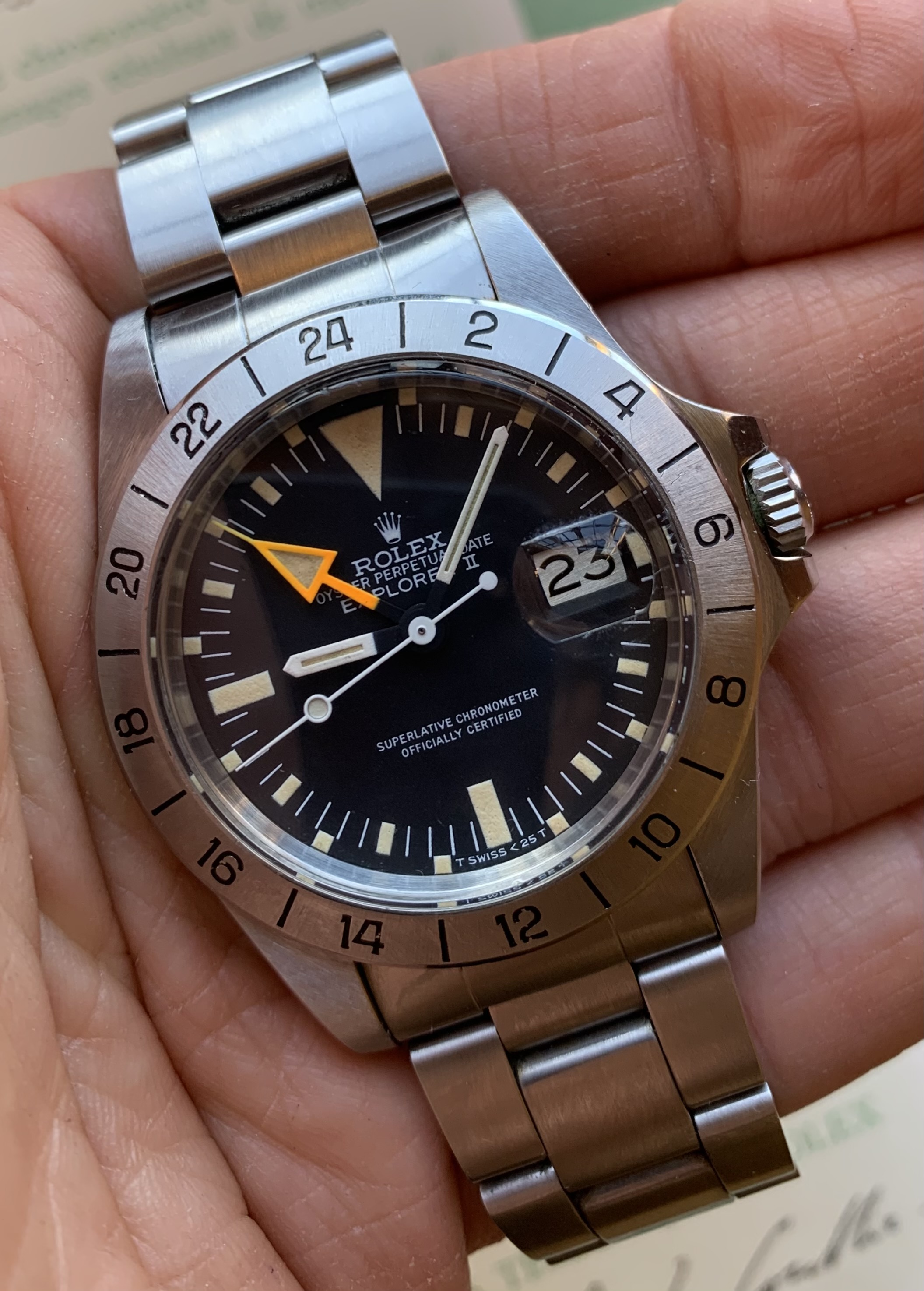 A no excuse excellent example of an orange hand explorer II with the most full set possible.